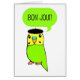 Un produit avec un dessin d'une perruche verte qui porte un béret et dire noirs élégants : "Fève Jour !" (qui signifie "bonjour" en français)