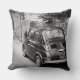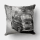 Foto's gooien het kussen met een oude kleine FIAT 500 auto in een straat in een stad in Italië in stijlvol zwart-wit. Geweldige decoratie op je bank!