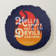 Een boekige kussen met het citaat van William Shakespeare The Tempest "Hell is empty, and all devils are here are here" tegen een oranje vuur op een blauwe achtergrond *Let op dat het Zazzle Watermark dat in de zoomvoorvertoning wordt weergegeven NIET op het uiteindelijke gedrukte product zal verschijnen. © Bookish en Wonderful