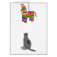 Een nieuwsgierig kat kijkt voorzichtig naar een pinata! Geweldig voor feestelijke uitnodigingen, verjaardagen, cinco de mayo, en feestdagen!