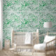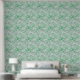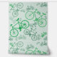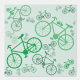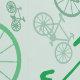 Een mengelmoes van groene grote en kleine fietsen tegen een lichtgroene achtergrond.