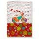Voor de meisjes een romantisch fietsontwerp met een kleurrijke fiets en rode harten, stippen en muzieknoten in kleur