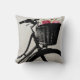 Stijlvolle accentwerpkussen gedaan in een antiek linnen look, met afbeeldingen van de voorkant van een zwarte fiets, met zijn mand met kleurrijke roze pioenenbloemen. Voegt een echte decoratoraanraking aan om het even welke ruimte van het huis of kantoor toe en maakt een groot giftidee.