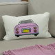 Dubbelzijdig kussenkussen met een schattige roze Figaro Car en een geheim Clan McFig tartan auto silhouet aan de andere kant. U kunt de achtergrondkleur eenvoudig wijzigen