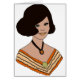 Illustration à la main d'un modèle de mode des années 1960 réalisé en orange foncé et pâle.