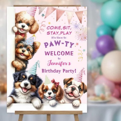 Filles Puppy Pawty Invitation de fête d'anniversai