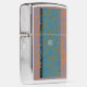 Het moderne grafische ontwerp op deze Zippo Lighter is gemaakt van een scan van een strip met 35 mm film. De achtergrondkleuren zijn gedempte hemelvervagen en rusten. De kleuren van de filmstrip zijn gedempt aqua blues en gouden browns. De bovenkant van de filmstrip, waar hij omvouwt, is zwart met waterblauwe hooglichten. Er is monogram tekst die voor u wordt geplaatst om, te personaliseren of te schrappen als u verkiest.