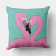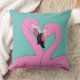 Un oreiller jeté avec un couple de flamants sur un arrière - plan d'aqua.