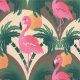 Flamingo en Palmen Retro bruin patroon Behang