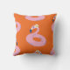 Een speels ontwerp met roze flamingovormige zwembaddrijvers versierd met vrolijke smileybloemen op een felle oranje achtergrond. Het grillige en levendige patroon voegt een vleugje tropische vreugde en zomerse vibes toe.