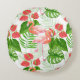 Waterverf met flamingo bloemen en vogels, monstera en palmbladeren.