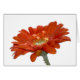 La carte de voeux avec une photo d'une fleur de marguerite orange/gerbera avec de l'eau se laisse tomber.