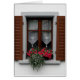 Cadre et volets avec fleurs rouges à Vaduz, Liechtenstein.
