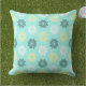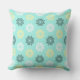 Jetez un oreiller avec un motif unique de fleurs qui sont faits de cercles de chevaux de mer. Fleurs de mer en blanc, jaune clair, vert d'eau foncé sur un arrière - plan d'eau claire.