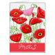 Envoyez une note à quelqu'un de spécial avec cette carte de notes élégante et belle avec vos initiales monogrammes. Cette carte présente l'une des fleurs les plus populaires - le pavot rouge. Ce bouquet de pavots comprend un seul pavot rose parmi les pavots rouges. Les bourgeons et les fleurs légèrement ouvertes sont inclus dans le groupement de fleurs sophistiqué et élégant. Cet arrangement coloré est l'art original de Phyllis Dobbs. Le devant est orné d'un bouquet de pavots. Une zone rouge en bas offre un espace pour vos initiales monographiques ou pour changer votre nom ou d'autres mots. L'intérieur de la carte a un bord de pavots d'un côté et est vide de l'autre côté pour votre message personnalisable ou note manuscrite. Les fleurs sont vives et gaies dans des couleurs spectaculaires de rouge, rose, vert et blanc. Red Poppy art est disponible sur plusieurs produits coordonnés entièrement personnalisables pour faire votre propre.