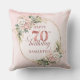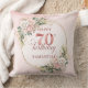 Célébrez 70 ans avec style avec cet oreiller doré rose scintillant. Avec des fleurs de peinture à l'eau rose poussiéreux, rose clair et rose saumon, une verdure luxuriante, des accents d'eucalyptus et un cadre doré, ce design boho, floral et bohème est un cadeau parfait pour un coussin de 70e anniversaire.
