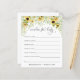 Demandez aux clients de la douche de remplir ces adorables souhaits pour les cartes bébé à votre baby shower. Avec une illustration de verdure et de tournesols. Personnalisez le avec le nom et la date de la douche de maman.