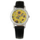 Fleurs de soleil sur la montre en cuir noir pour femmes