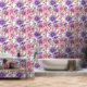 Aquarelle douce violette et rose de grandes fleurs florales sont mélangées avec de petites tiges vertes et des feuilles vert olive sur un arrière - plan blanc. Cette illustration intemporelle et élégante d'été et de printemps transformera instantanément n'importe quelle pièce, apportant l'extérieur avec ce design frais et rustique et répétitif. Ce graphique vintage à l'ancienne, mélangé à une fresque murale moderne chic du jardin, est idéal pour n'importe quel salon, salle de bain ou chambre qui a besoin d'un rafraîchissement ou d'une touche de classe. Convient aux environnements domestiques et professionnels.