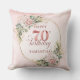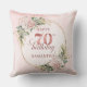 Célébrez 70 ans avec style avec cet oreiller rose doré brillant. Avec des fleurs aquarelles rose poussiéreux, rose tendre et rose clair, une verdure luxuriante, des accents d'eucalyptus et un cadre doré, ce design boho, floral et bohème est un cadeau parfait pour un oreiller de 70e anniversaire.