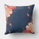 Fleurs roses et rouges sur oreiller à jet bleu
