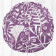 florale botanische silhouetten van natuur, witte bladeren, bladeren en bloemen op een paarse achtergrond. Originele kunst van Nic Squirrell.