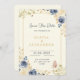 Vier je liefdesverhaal met deze elegante bloemenbruiloft uitnodiging! Met zacht marineblauw en gouden waterverf bloemen, delicate botanische accenten en sierlijke script typografie, dit ontwerp creëer een tijdloze romantische sfeer. Perfect voor moderne of klassieke bruiloft, deze uitnodiging is volledig aanpasbaar met uw namen, datum en locatie. Gedrukt op papier van topkwaliteit, is het ideaal om uw speciale dag in stijl te delen.