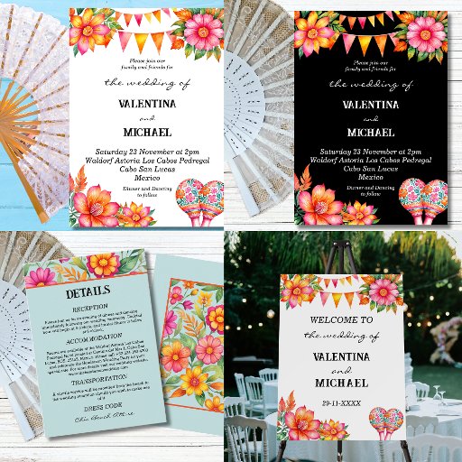 Floral coloré Fiesta Mariage mexicain Menu