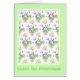Een zeer Kaart met de voorklep groet in het Deens en een motief van roze rozen, romig wit Mock Sinaasappel en paarse Lavendel op een witte achtergrond met een bleke groene rand, van een handbeschilderd aquarelontwerp van Judy Adamson. De binnenkant is leeg gelaten voor je eigen bericht.