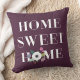 Un "Home Sweet Home" décoratif lance l'oreiller avec un design typographique floral.