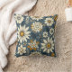 Gedetailleerd bloemmotief met crème en gele bloemetjes op een blauwe achtergrond.