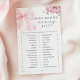Floral pink bow "Who knows mommy best" baby shower game for a memorable party.