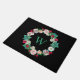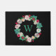 Uitnodigende deurmat gedaan in het zwart, met afbeeldingen van een geschilderde bloemenkrans. Een groen monogram van één letter, in het midden van de krans, is klaar om voor jezelf te personaliseren of als een geweldig huis verwarmend cadeau-idee.