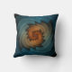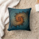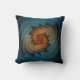 Vierkante gooi kussen ontwerp van "Whistling In The Dark," een Apophysis fractal door Susan Wallace. Copyright © 2008, Susan Wallace. Razor edged spiraal van levendig sinaasappel op een gestructureerde turquoise blauwe achtergrond.