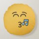 Een fluitende emoticon met lachende ogen en een muzieknoot. Aangepaste tekst aan de achterzijde.