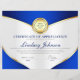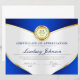 Le prix de certificat d'appréciation professionnel présente des tons de dégradé bleu riche et or profonds, une médaille et des étoiles bleues. Personnalisez à votre goût.