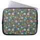 Dit folkkunstontwerp is voorzien van een roze, oranje en blauwgroen bloempatroon op een donkerblauwe achtergrond.