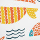 Dit folkkunstontwerp kenmerkt een patroon van oranje, gele en blauwgroen zwemvissen.