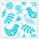 Deze folk art stijl vogels en bloemmotief in blauwgroen en wit.