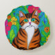 Folk Art Whimsical Style Kat en Bloemen Rond Kussen
