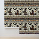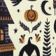Een behang voor alleen de gelegenheid van spookachtigheid, oplichterij, schattigheid en volkskunst. De illustratie toont een heks die vanuit haar spookhuis gaat winkelen met haar gebruikelijke metgezellen - jack of lantaarns, zwarte vogels en haar tas met toverdrank. Ideaal voor Herfst festivals en Halloween. Precies goed voor een geweldig cadeau voor verjaardagen en house warming.