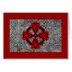 Une croix celtique rouge figurant sur un fond délabré noir et blanc