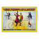Het teruggezette en digitaal verbeterde circusposter van 1900 die circusuitvoerders toont die fietsen op tightropes met voeten treden. De meeste onvolkomenheden zijn verwijderd. Kleuren gecorrigeerd. Afbeelding met dank aan Library of Congress.