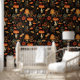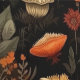 Charmante behangfuncties en AI gegenereerd digitaal kunstpatroon van paddenstoelen, bladeren en andere bosweg elementen. Perfect voor accentmuren en allerlei doe-het-zelf interieurprojecten!
