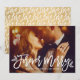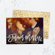 Cette élégante carte de voeux de vacances pour le nouveau Mr et Mrs dispose d'une photo du jour de mariage avec "Forever Joyeux" en script brossé moderne et texte blanc personnalisé qui peut être personnalisée avec un message Joyeux Noël. Branches et baies feuillage accents le design et une typographie moderne motif de "l'Amour" en script apparaît au dos de la carte. La fausse couleur arrière - plan de feuille d'or peut être customisée pour coordonner avec votre photo.