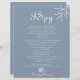 Deze formele, minimale, stoffige blauwe, spionagewedstrijd is perfect voor een rustige bruiloft. Het ontwerp biedt waterverf wilde kruiden tegen een stoffige blauwe achtergrond.