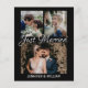 kondig je bruiloft aan met je vrienden en familie met deze moderne kaart. Het ontwerp heeft 3 fotocollage vooraan met witte kalligrafie "Net gehuwde"tekst en de namen van de nieuwe widen. Op de achterkant, hebt u één foto op de bovenkant en de paragraaf van de huwelijksdetails hieronder. Pas de kaart aan met uw foto's, huwelijksgegevens, huwelijksdatum en namen.