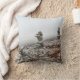 Kussen, foto evenwichtssteen, inukshuk op een strand, in de mist. Titel: "Evenwicht", Alma, N.B., Canada. Marie-Ève LaBadie fotograaf