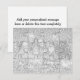 Vermoedelijk van dezelfde oude saaie wenskaarten? Voeg je eigen foto en persoonlijke boodschap toe aan creëer een 12-stuk gepersonaliseerd "mock" puzzel wenskaart voor je vriend of geliefde! Snijd gewoon langs de puzzelstuklijnen en plaats ze in de bijbehorende envelop. De ontvanger zal de puzzel moeten samenvoegen om uw groet te zien! **OPMERKING: DIT IS GEEN WERKELIJK PUZZEL EN DE DELEN ZIJN NIET GEperforeerd - U moet ze met de hand knippen of de uitnodiging intact laten.** Dit product is verkrijgbaar in 6, 9, 12, 30 en 63 stuks. **Dit ontwerp is ook beschikbaar in andere opties. Kopieer en plak deze URL in uw browser om ons assortiment aanpasbare puzzelwenskaarten te uitzichten: http://www.zazzle.com/malibuitalian*/puzzle+gift