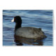 Carte de la Foulque macroule. Les gris ternes et le noir de ces petits oiseaux d'eau contrastent avec leurs becs blancs ou jaunes. Ils sont très communs sur les étangs et les marais des prairies.